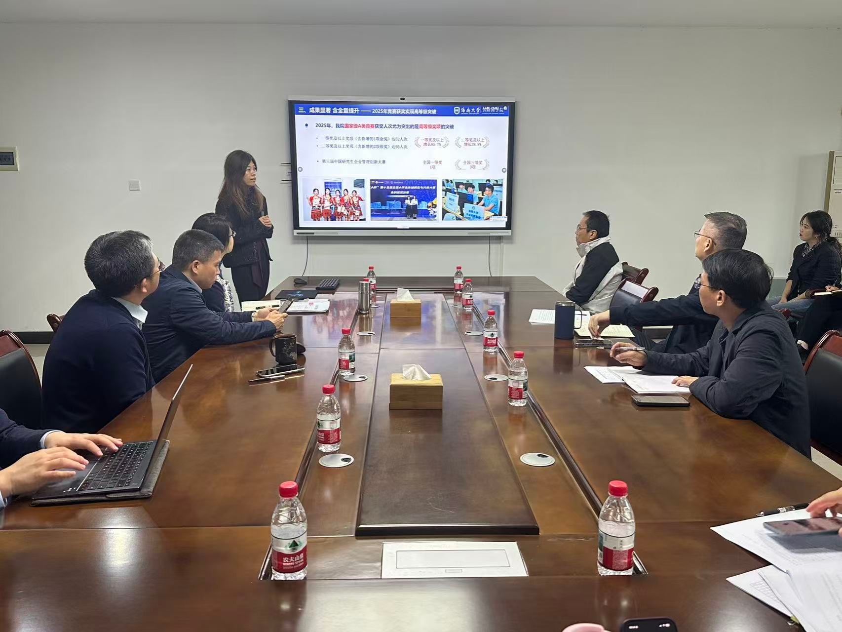 各系主任、专业硕士项目负责人及行政职能部门负责人围绕年度核心工作,系统汇报了在学科建设、人才培养、科学研究、社会服务及内部治理等领域的进展与成效,并对2026年发展进行了规划与展望。